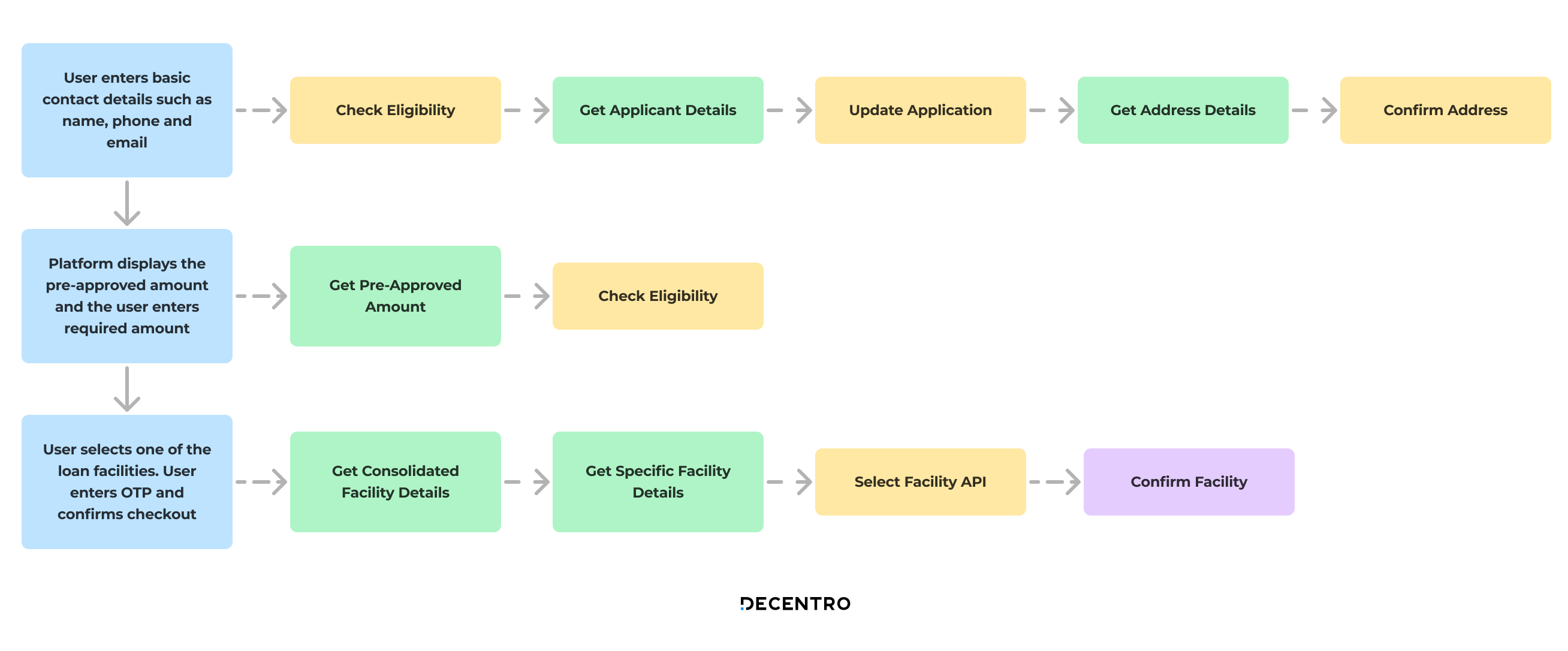 Decentro's Checkout Finance stack aims at enabling embedded finance to our customers with a single API. All additional tasks such as performing KYC of the customer, liveliness checks, agreement generation and e-signing, displaying all the loan facilities available to the end user and confirming a facility via an OTP is done in a customisable UI that is managed by Decentro.